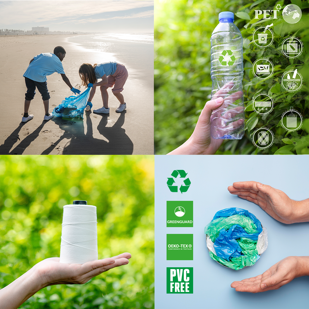 De textiel collecties van Cedeko (Rolgordijnen, Plissé en Verticale Jaloezieën) bestaan voor een groot deel uit stoffen die gemaakt zijn van gerecyclede garens. Zelfs voor toepassing in projecten zijn stoffen opgenomen die voldoen aan alle vereisten en vervaardigd zijn uit gerecyclede garens. Door de unieke samenstelling van deze gerecyclede stoffen, voldoen deze stoffen aan de hoogste kwaliteitseisen die wij aan de materialen stellen. Hiermee is een maximale levensduur gegarandeerd.