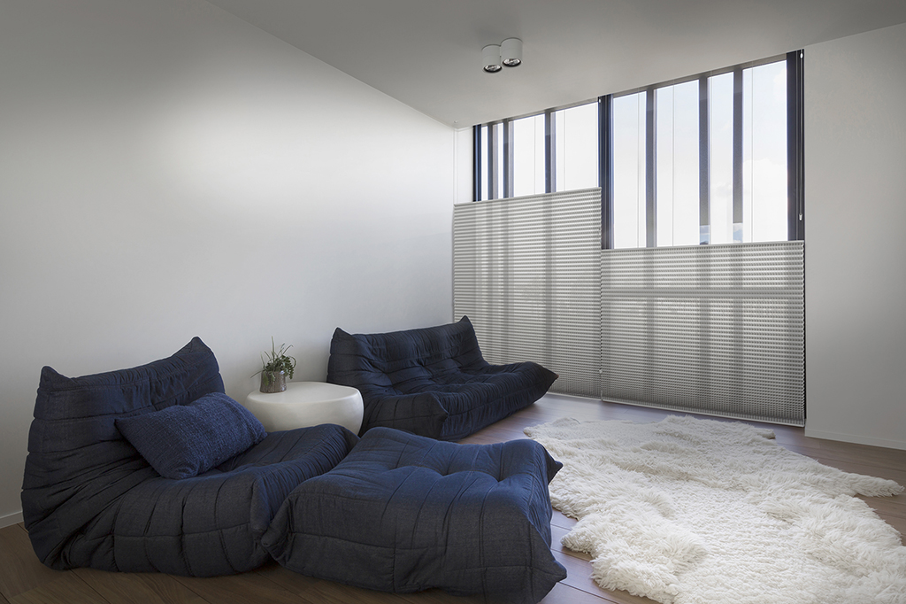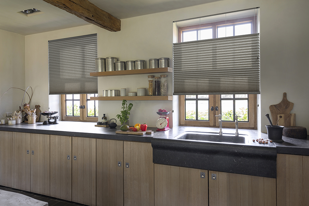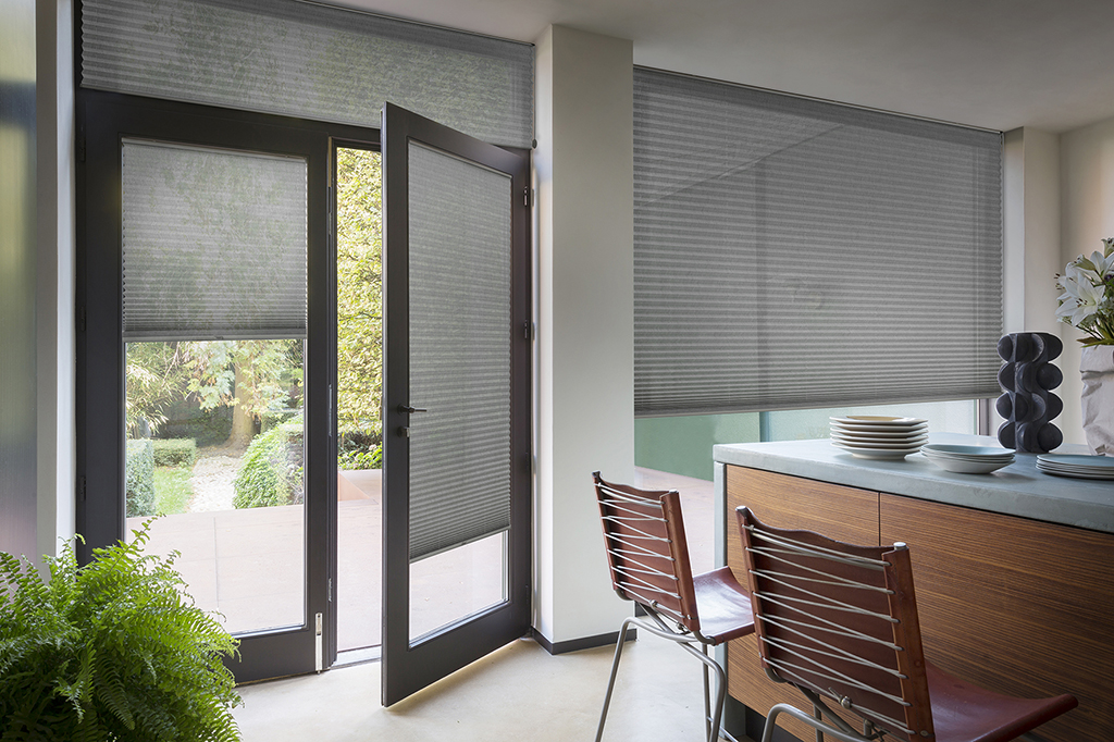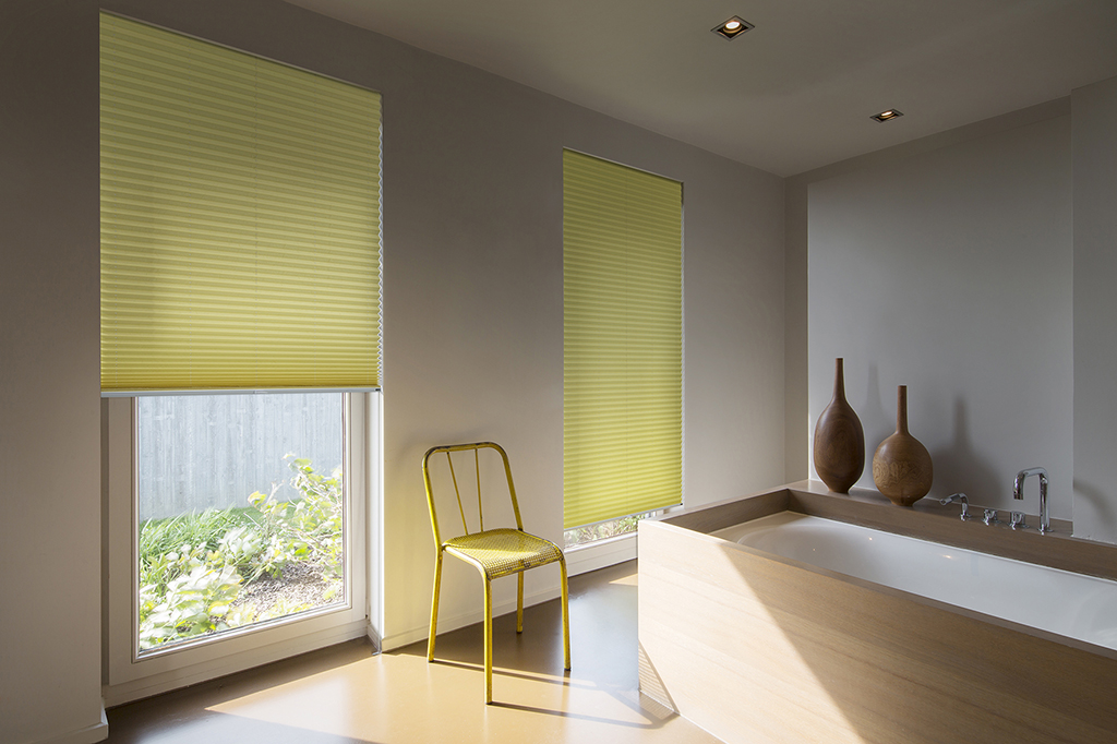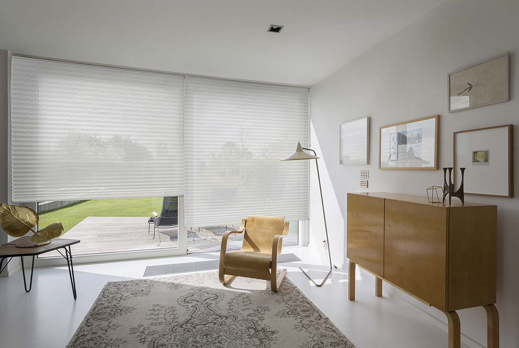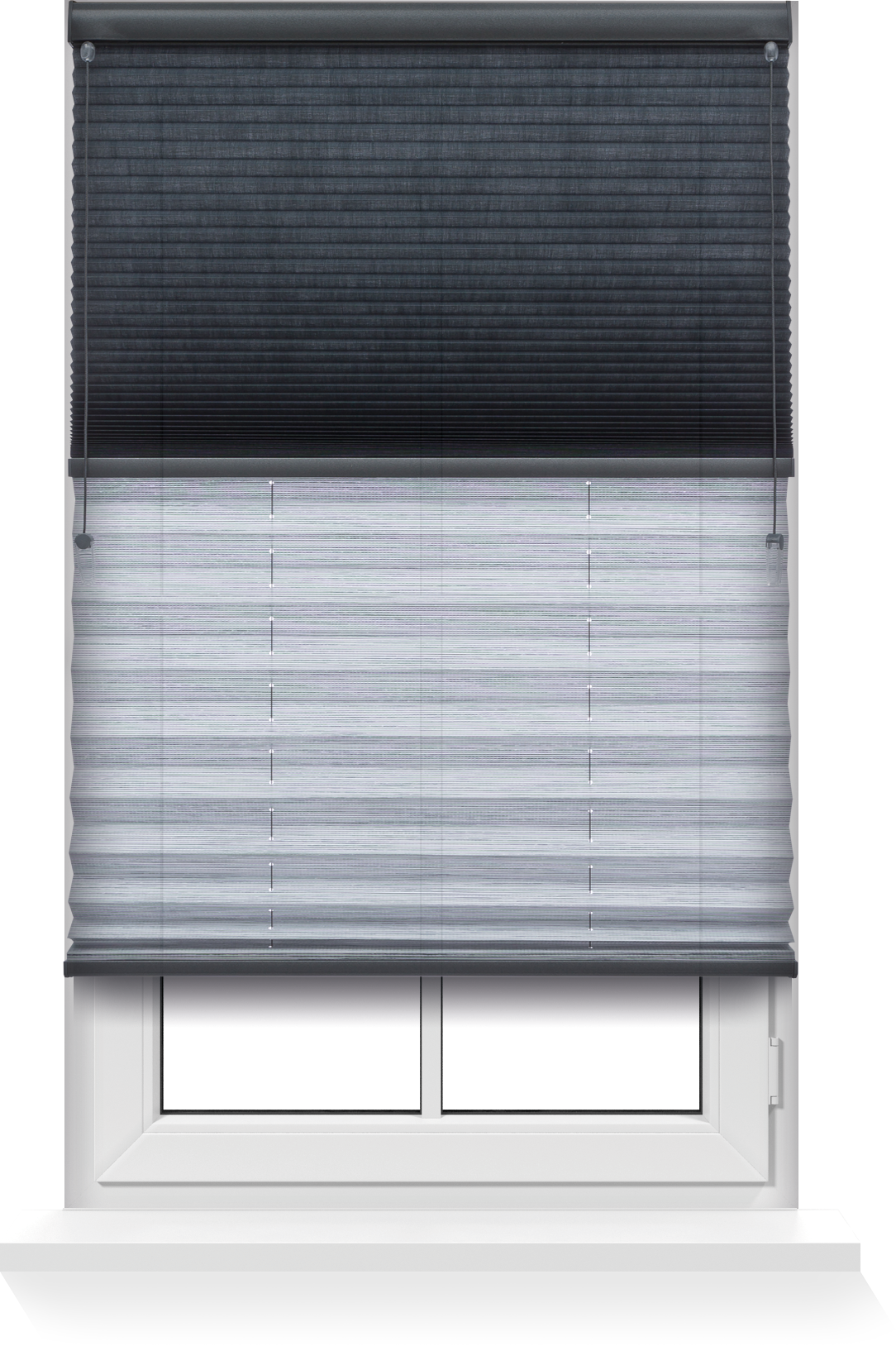 Combinatie Plissé met Duette® Shade. De Plissé collectie biedt een uitgebreide keuze aan stoffen met verschillende transparanties die naar gelang je keuze, in meer of mindere mate, privacy bieden. Van transparant tot lichtdoorlatend. Plissé gordijnen zijn in één product uitstekend te combineren met de stoffen uit de Duette® Shades collectie. Zo worden de keuzemogelijkheden vergroot, zowel in transparantie als in stof.