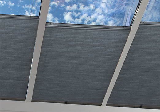 Plissé gordijnen zijn ook zeer geschikt voor plafondramen zoals een lichtkoepel, serre tot 90° hellend. Informeer naar de mogelijkheden.