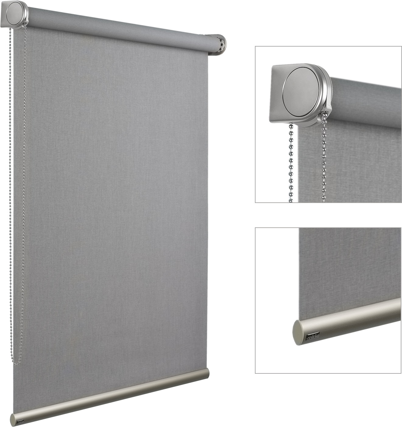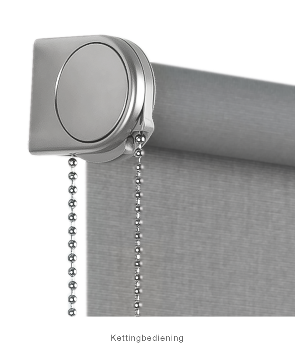 De rolgordijnen kunnen eenvoudig worden bediend met behulp van een handige ketting. De Designer’s Choice en Upline uitvoering worden geleverd met een metalen ketting voor een luxe en solide uitstraling. Indien gewenst kan ook worden gekozen voor een kunststof ketting in kleur bijpassend bij het hardware systeem (White, Silver en Black). Standaard wordt het Cedeko Trendline rolgordijn geleverd met een witte kunststof ketting.