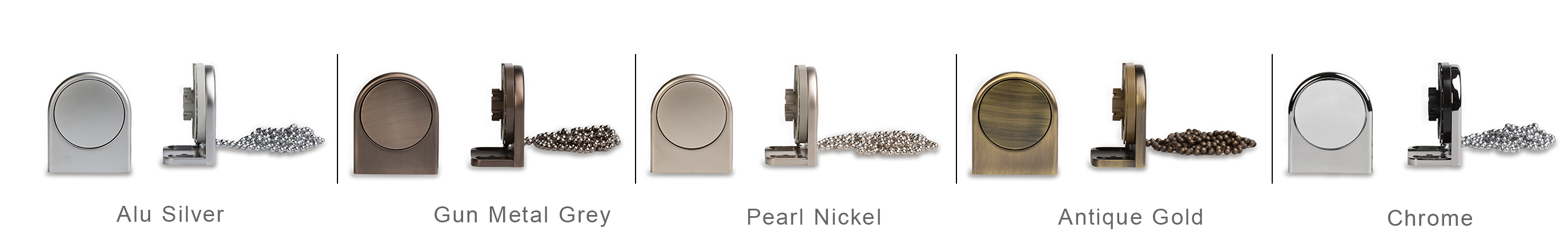 De high-end Designer’s Choice metalen steunen worden gecombineerd met een metalen ketting in kleur, passend bij de gekozen hardware kleur Alu Silver, Pearl Nickel, Chrome, Gun Metal Grey of